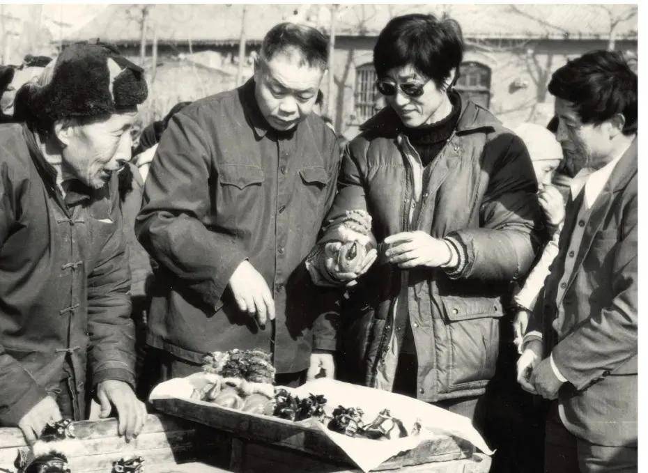 倪宝诚(右二)陪中国美术馆研究员李寸松(左二)在浚县调研泥咕咕(左一为王蓝田,右一为张希和)