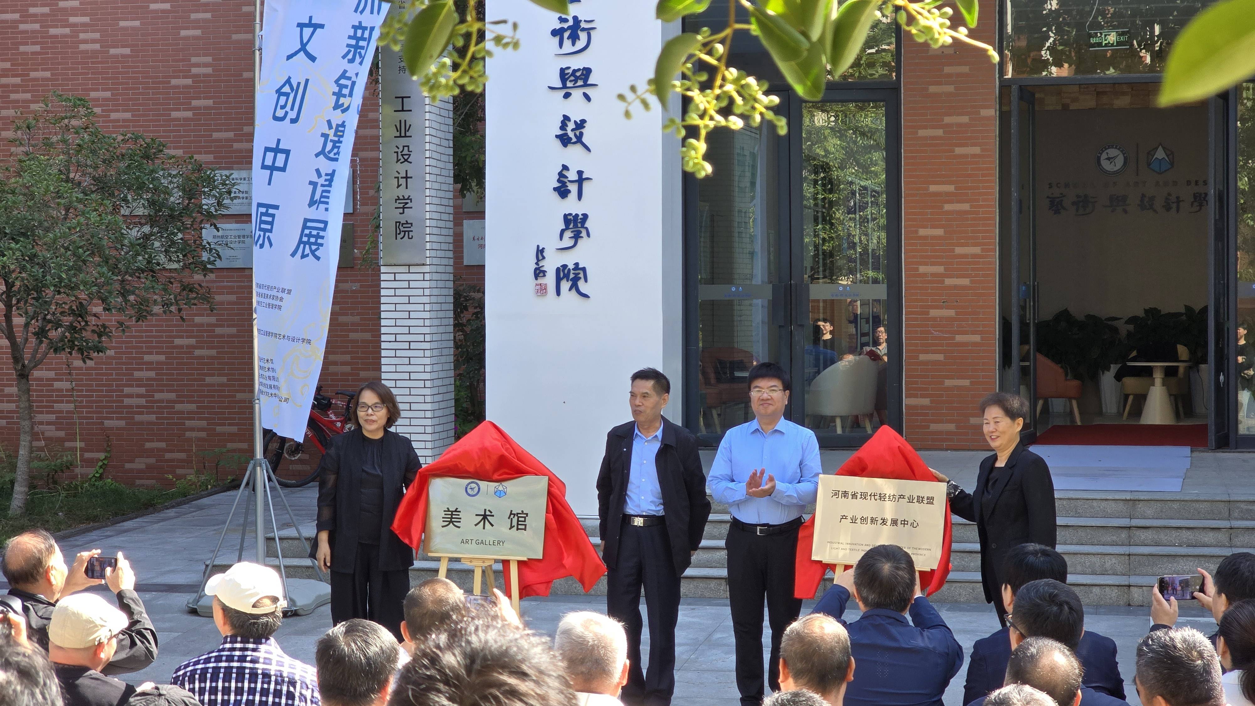 寇守峰、刘兆瑜、李丽、张巧玲共同为郑州航院美术馆、河南省现代轻纺产业联盟产业创新发展中心揭牌
